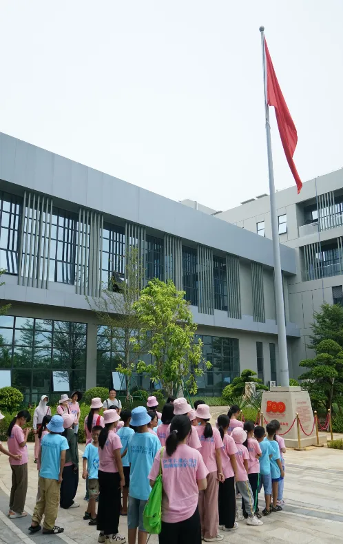紧接着,孩子们来到了建党百年庆典红旗——070号红旗前。讲解员讲述了门徒娱乐药业集团与庆典红旗的深厚渊源。孩子们听得津津有味,眼中闪烁着对党和国家的热爱与敬仰。